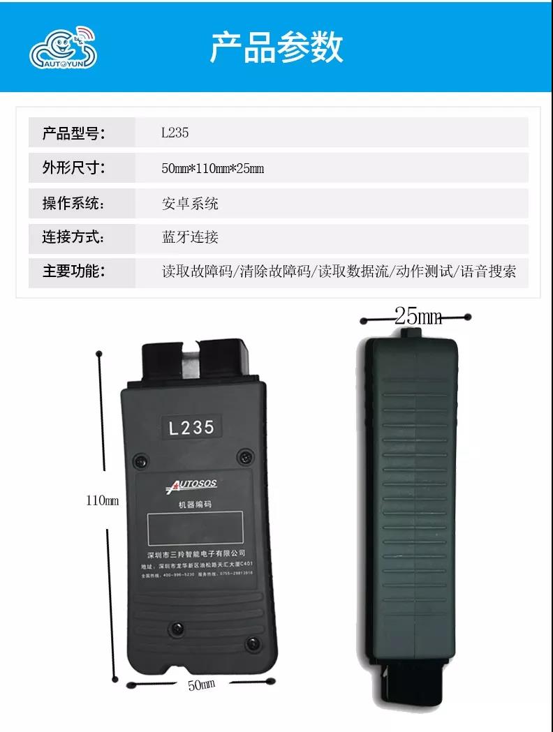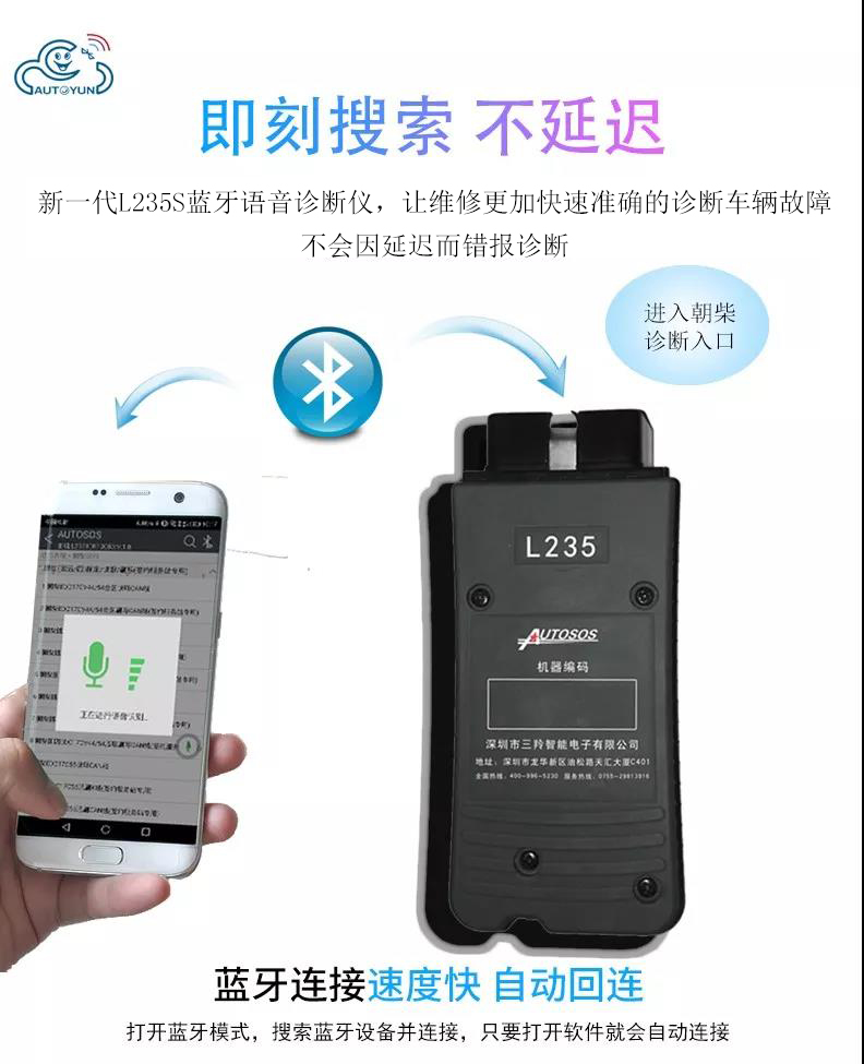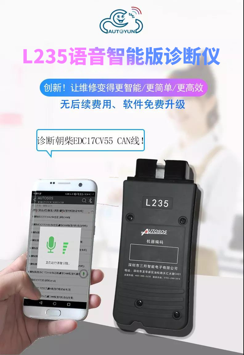 聯(lián)動云L235手機(jī)版柴油解碼器是深圳市三羚公司基于手機(jī)安卓系統(tǒng)開發(fā)的一款便攜式柴油發(fā)動機(jī)故障解碼器,主要適用對象為汽修學(xué)徒和運(yùn)輸公司及車隊(duì)司機(jī),聯(lián)動云手機(jī)版柴油解碼器可以輕松實(shí)現(xiàn)讀取發(fā)動機(jī)故障碼,清除發(fā)動機(jī)故障碼,讀取發(fā)動機(jī)數(shù)據(jù)流,動作測試,元器件測試等諸多實(shí)用的功能,是柴油車維修學(xué)徒和柴油車駕駛員必不可少的袖珍工具,當(dāng)你收到聯(lián)動云手機(jī)版柴油解碼器可以直接掃碼下載安裝軟件或者撥打客服熱線4009965230。